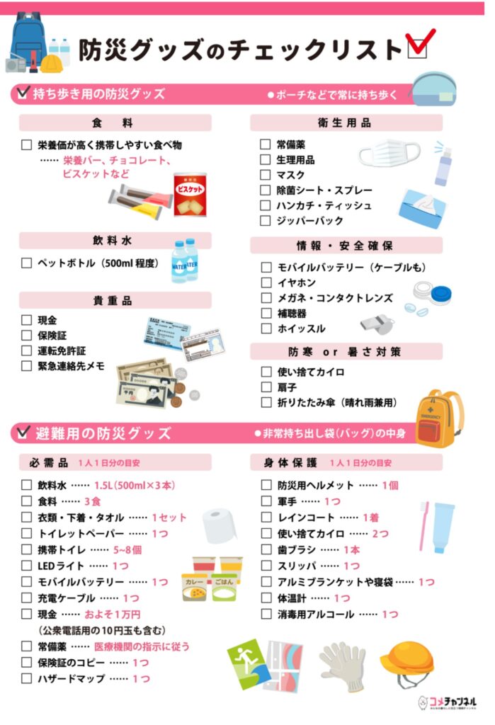 参考:コメチャンネル 防災グッズリストで本当に必要なものを紹介