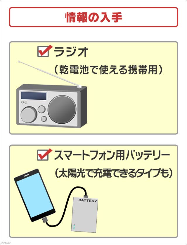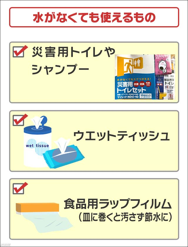 | 新聞紙:適宜 | ラジオ | 給水袋 |