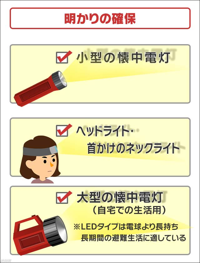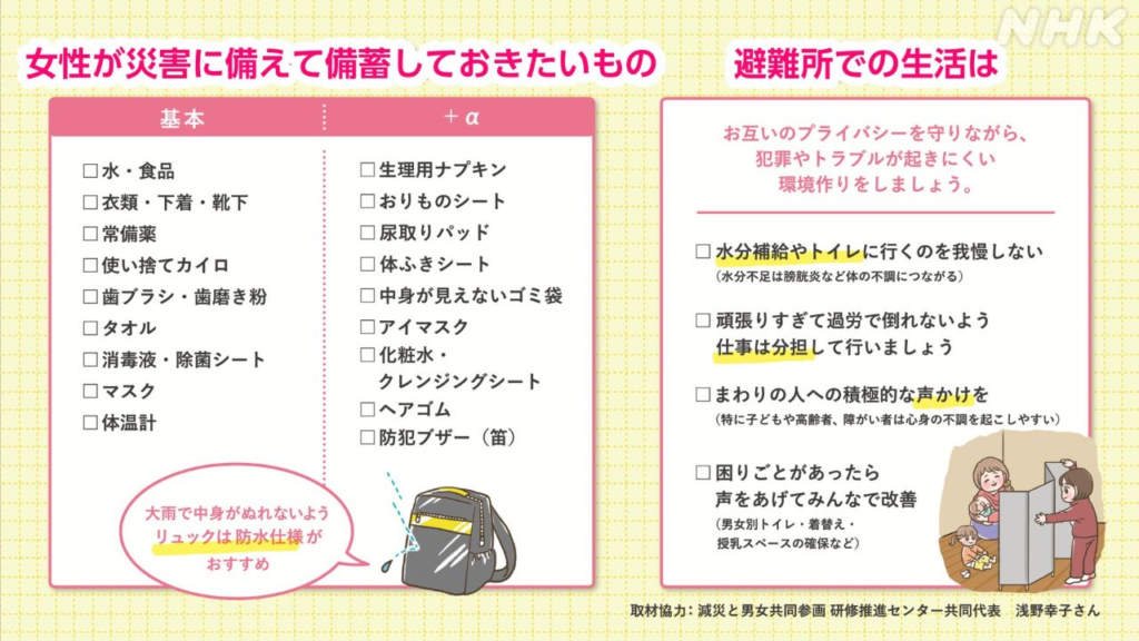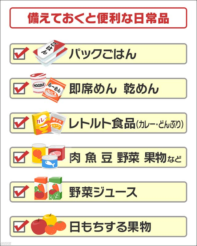 参考:NHK WEB 災害に備えて必要な備蓄品、防災グッズは?リストで紹介