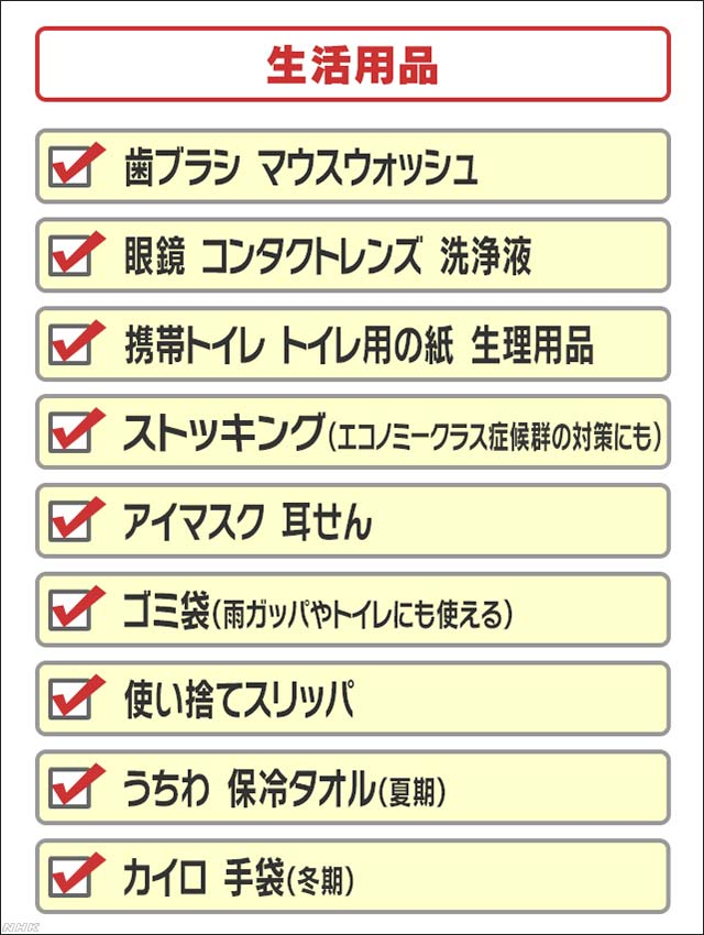 避難所生活で必要な物(持ち出し袋に入れるもの)