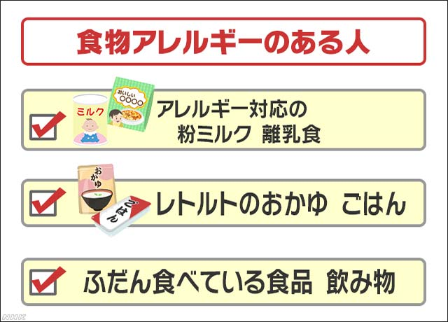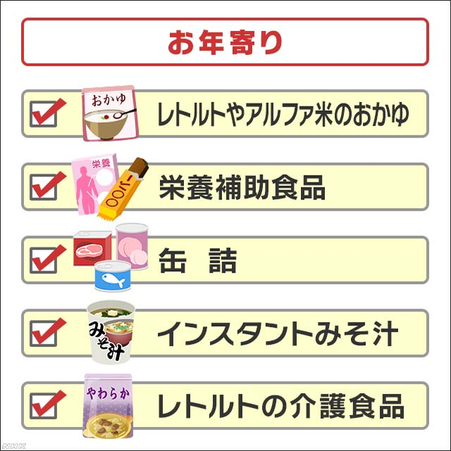 乳幼児やお年寄り 慢性疾患 アレルギーのある人(2週間分の備蓄が望ましい)